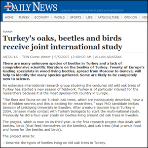 - Presentation of saproxylic oak beetles for arborists in Stockholm 2012 in Swedish newspaper “Dagens Nyheter”