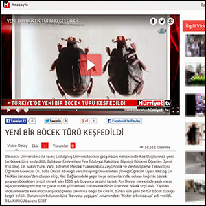 - “A new beetle species found in Turkey.” titled a video published on Hurriyet “Hürriyet - Web TV”